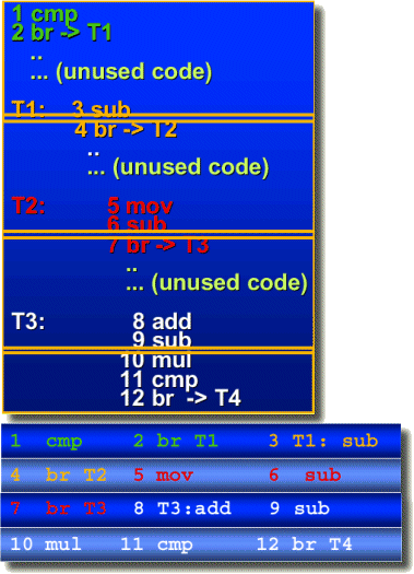 Как упоминалось выше, кэш трассировки может значительно улучшить ситуацию в случае с непредсказанным ветвлением. В данной ситуации альтернативный код может быть уже найден в кэше. Чтобы проверки, находится ли уже определенный код в кэше трассировки, есть довольно сложная структура флагов индексирующих блоки кэша.